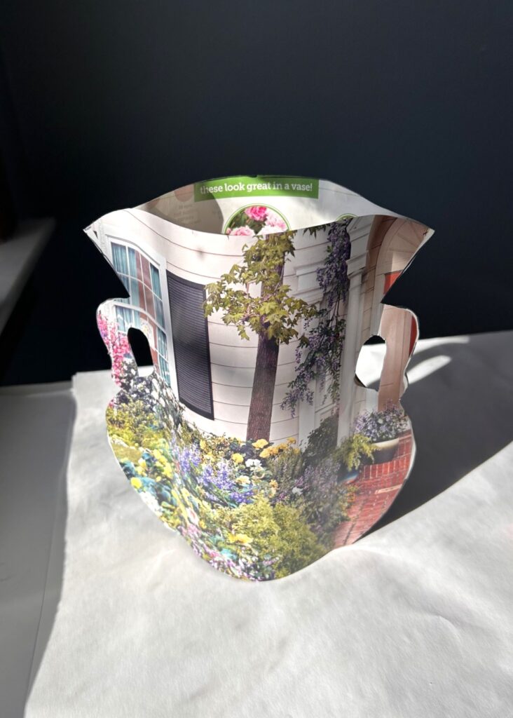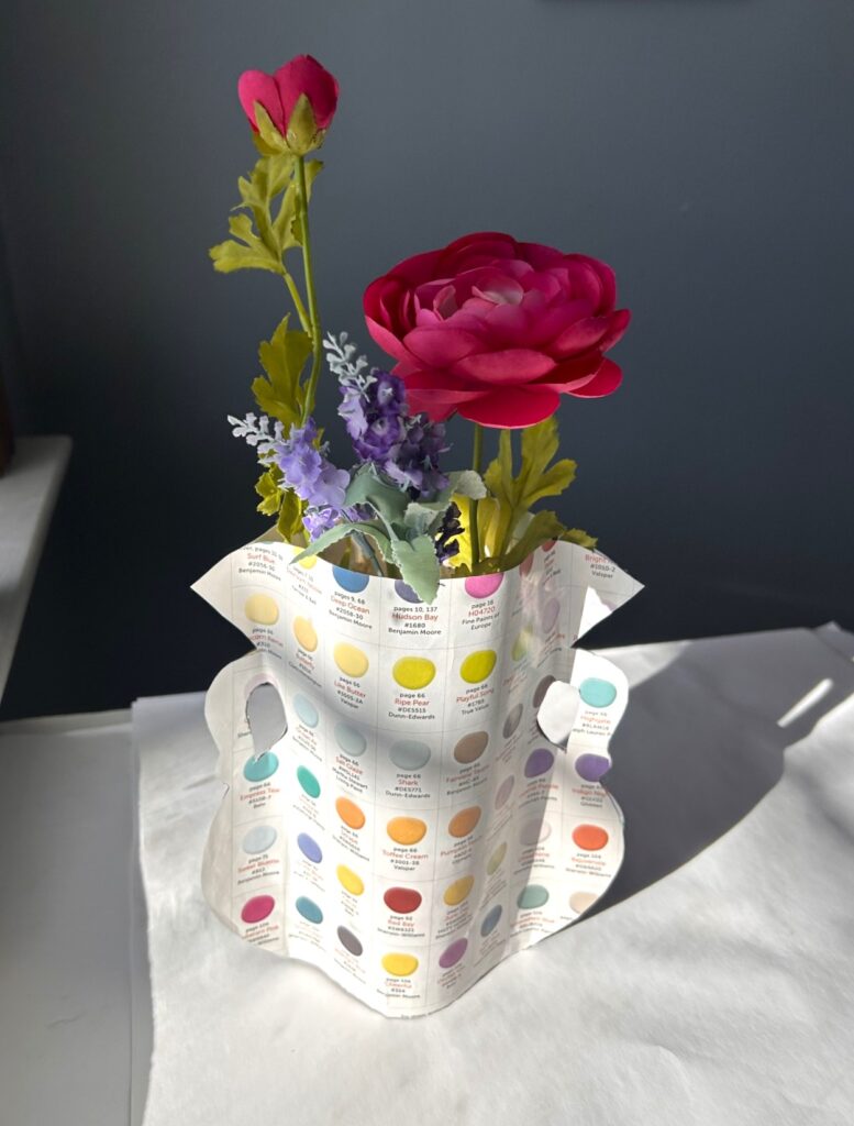 Using scrap paper, sketch a simple vase-inspired shape. Think curves, handles, and a top rim. Your paper sleeve should wrap about halfway around the vase so it slides on easily while still making a statement.
