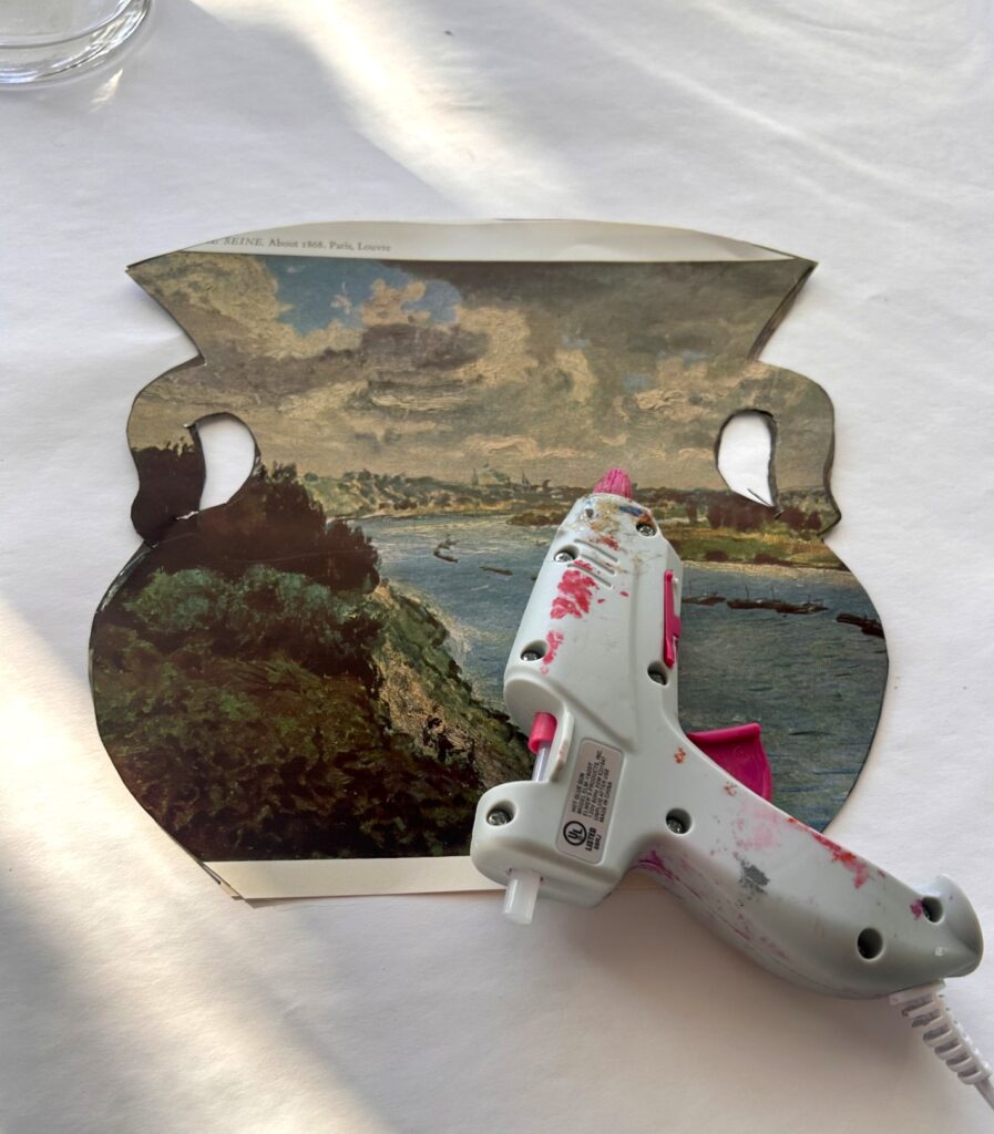 Place the two matching shapes together with the “good” sides facing out. Carefully open one side and apply a line of hot glue along the outer right and left edges only—leave the top and bottom unglued. (Adult supervision recommended for younger creators.)
