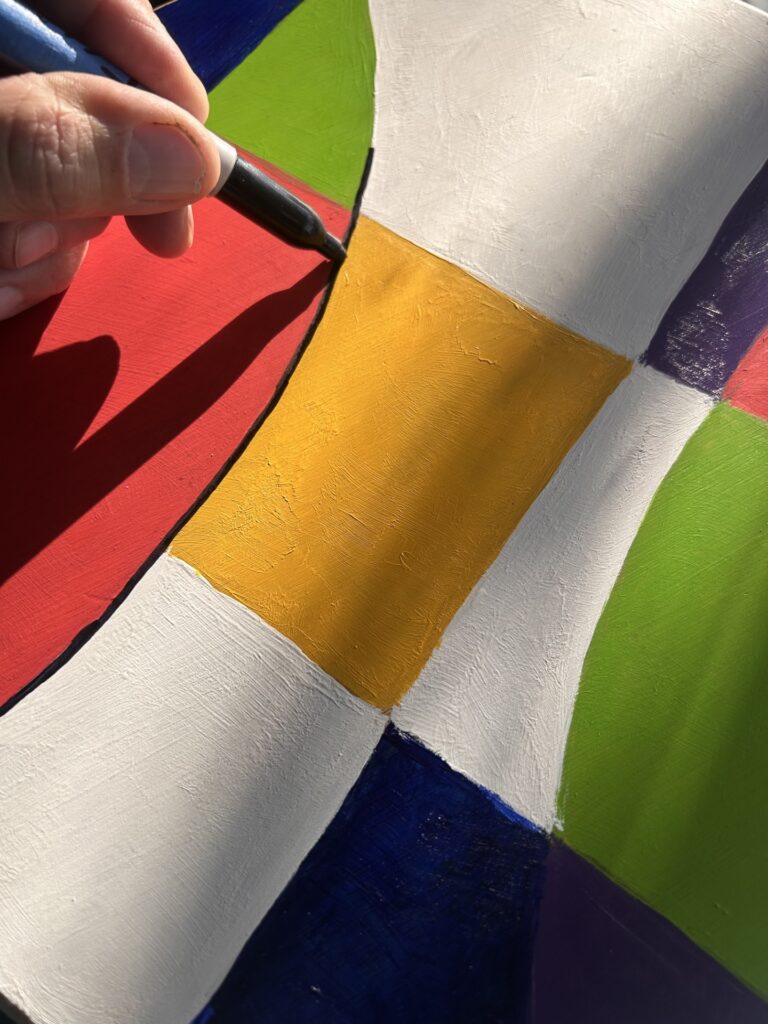 Once the painter’s tape is removed, grab a black Sharpie or black paint pen and outline each color section. Finish by adding a bold black line around the outer edge of the tabletop.