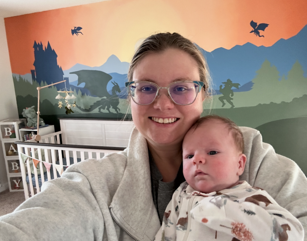 A hand-painted mural designed by my niece, Saige, and brought to life by her, her husband, Jake, and me before Milo arrived.