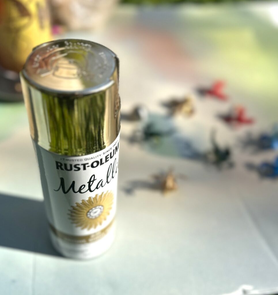 Place your lamp, finial, and extra dragons outside on a drop cloth. Apply several light coats of spray paint, allowing time to dry between layers. Rotate your piece as you go to ensure every dragon, turret, and curve gets its golden armor.