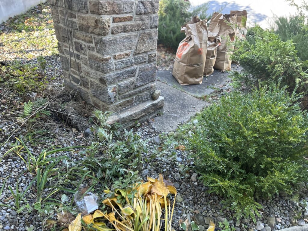 Believe it or not, this tiny space filled four whole yard bags! Even if that had been all I accomplished, it already looked and felt so much better. Sometimes clearing space — whether in your yard or your heart — is the first and most powerful step in transformation.