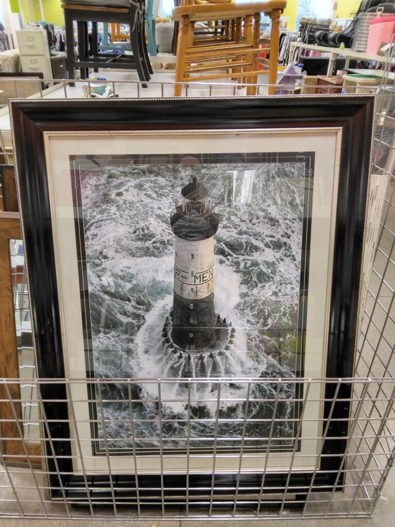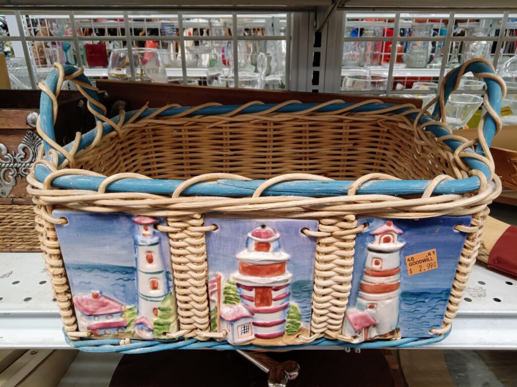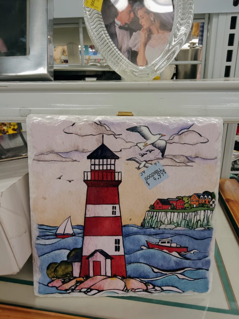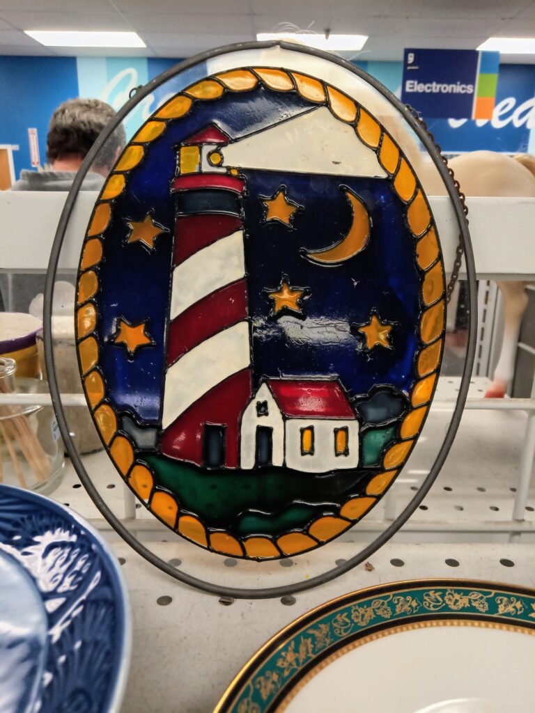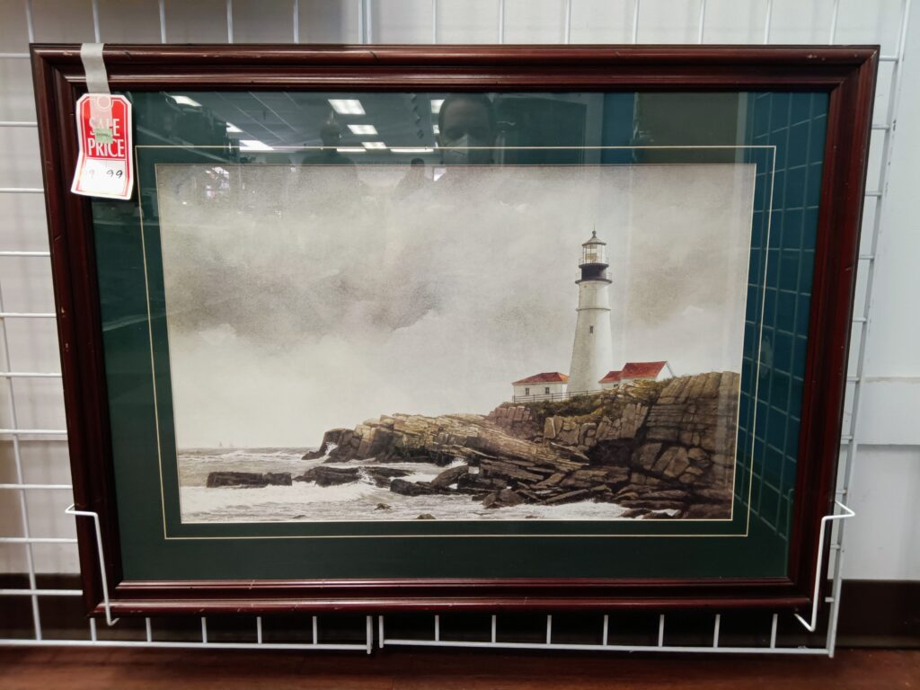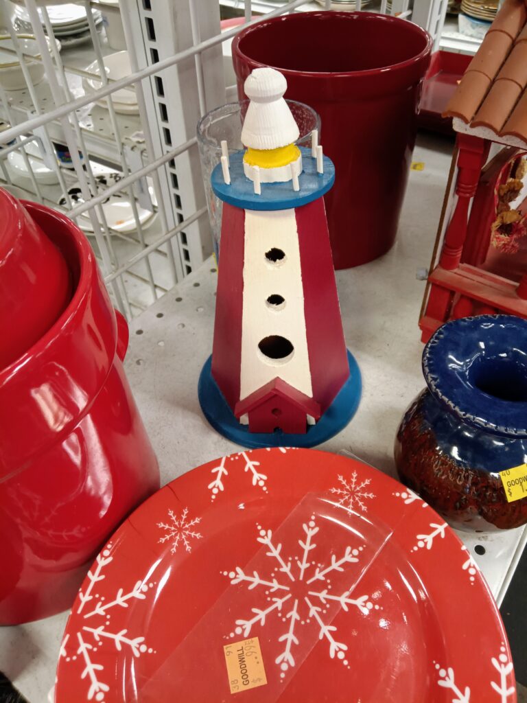 Today I was going to show you the best lighthouse items I’ve seen on DC Goodwill’s Shop Goodwill site recently, many of which are paintings. But I’ve seen so many good lighthouses in store this year that I’m going to focus on those. Here are ten at my Goodwill, right here in Gaithersburg: