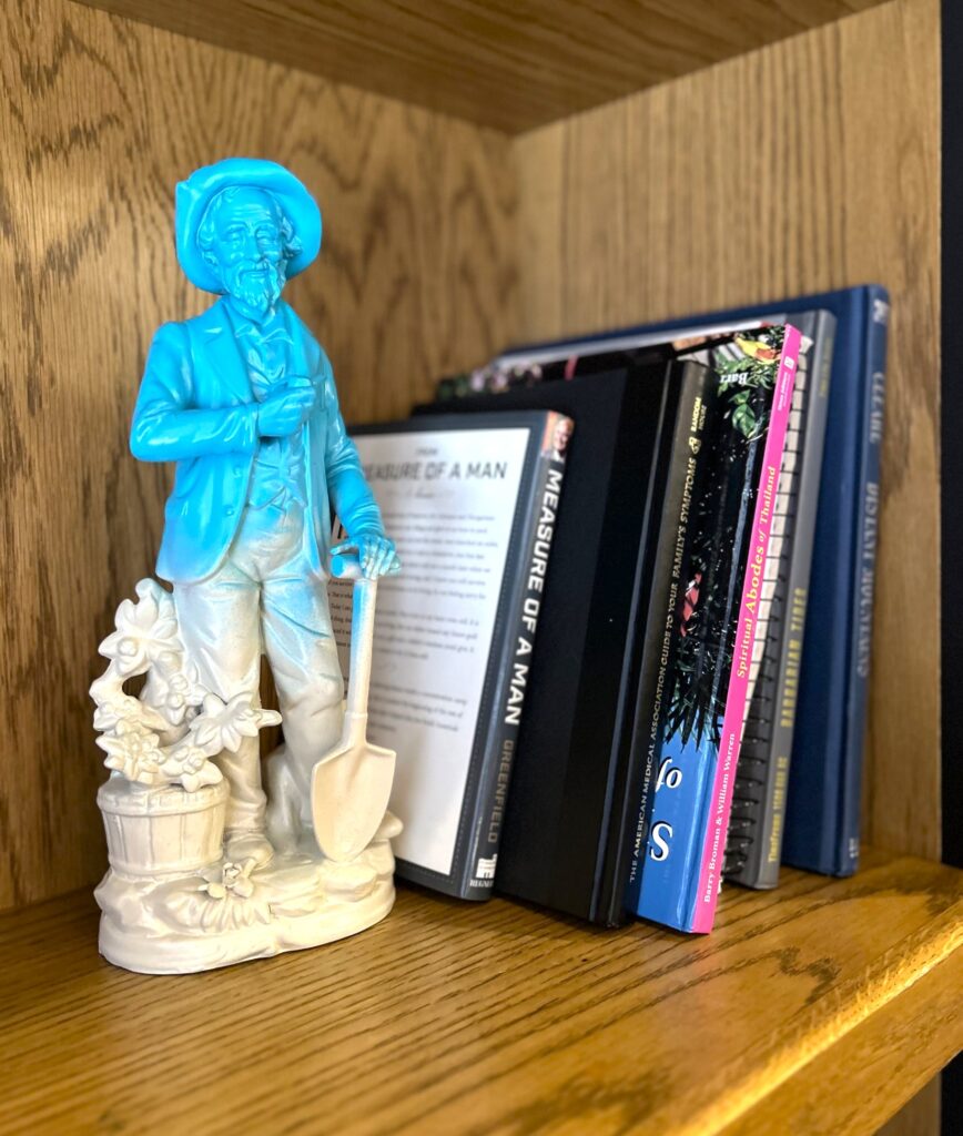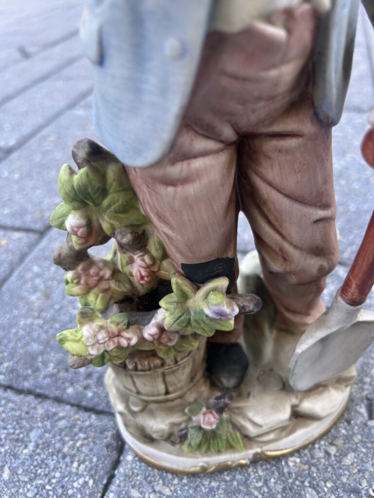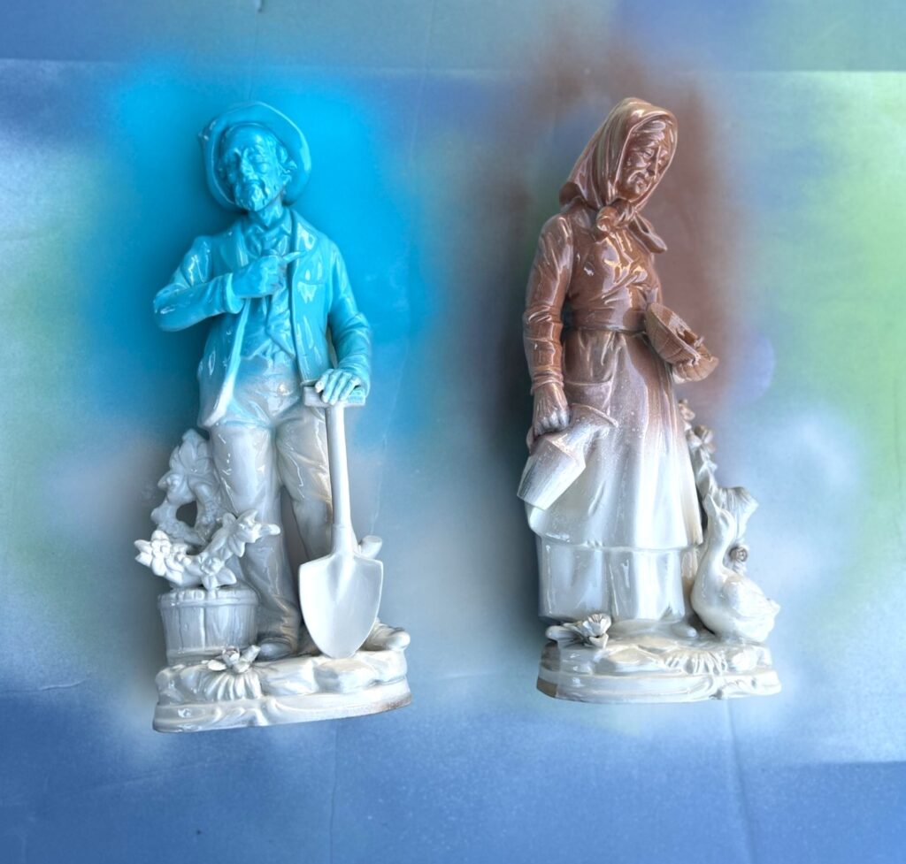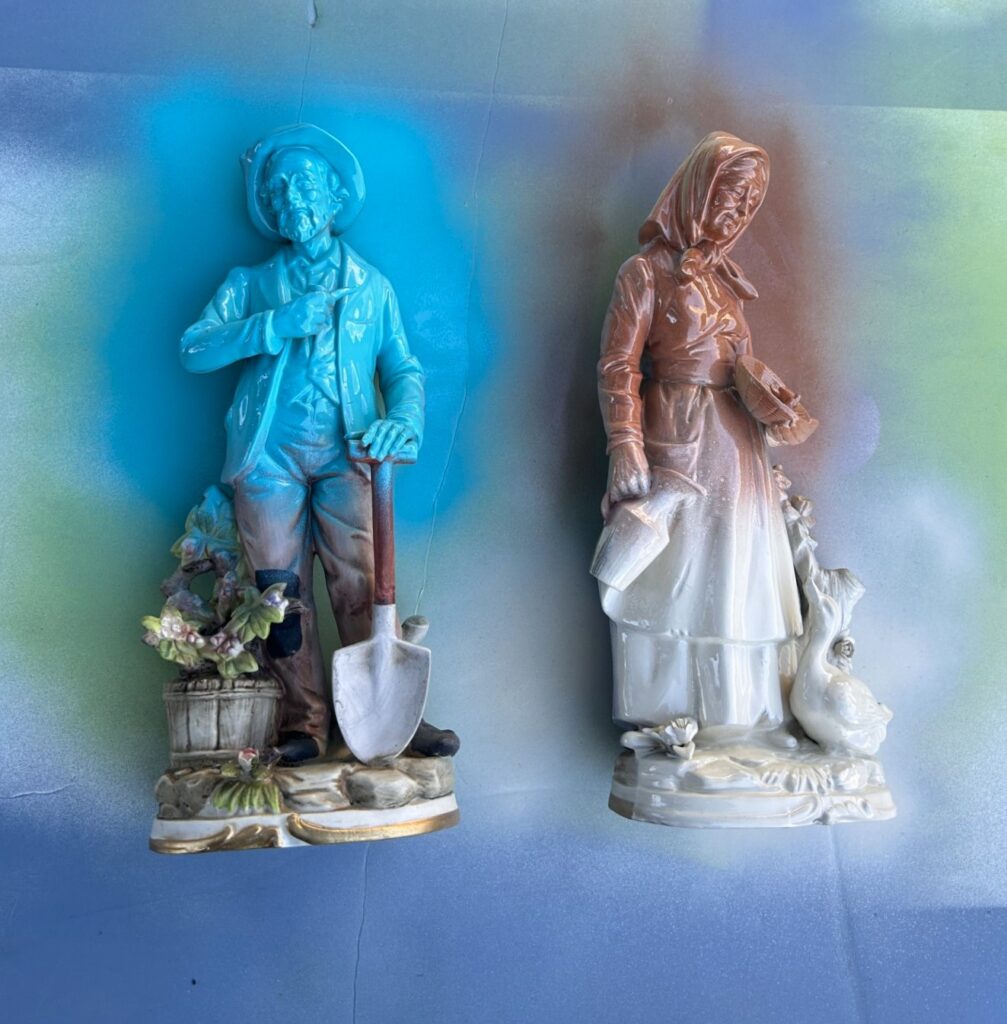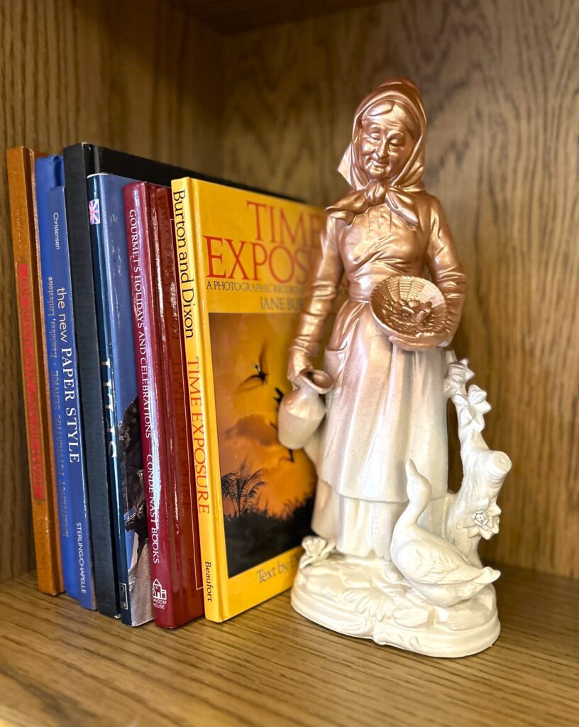 Later, back home in DC, I spotted this distinguished couple in the homewares section at Goodwill’s New York Avenue NE store. Their detailed clothing, expressive faces, and quirky accessories—a garden shovel and a hungry duck—caught my eye. This seasoned pair clearly deserved a new chapter, so into my cart they went.
