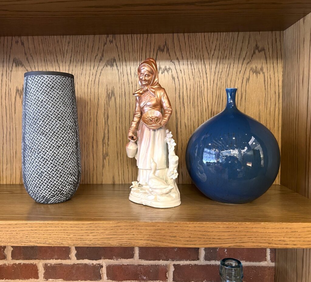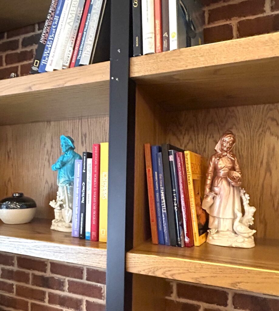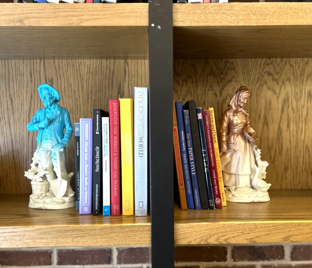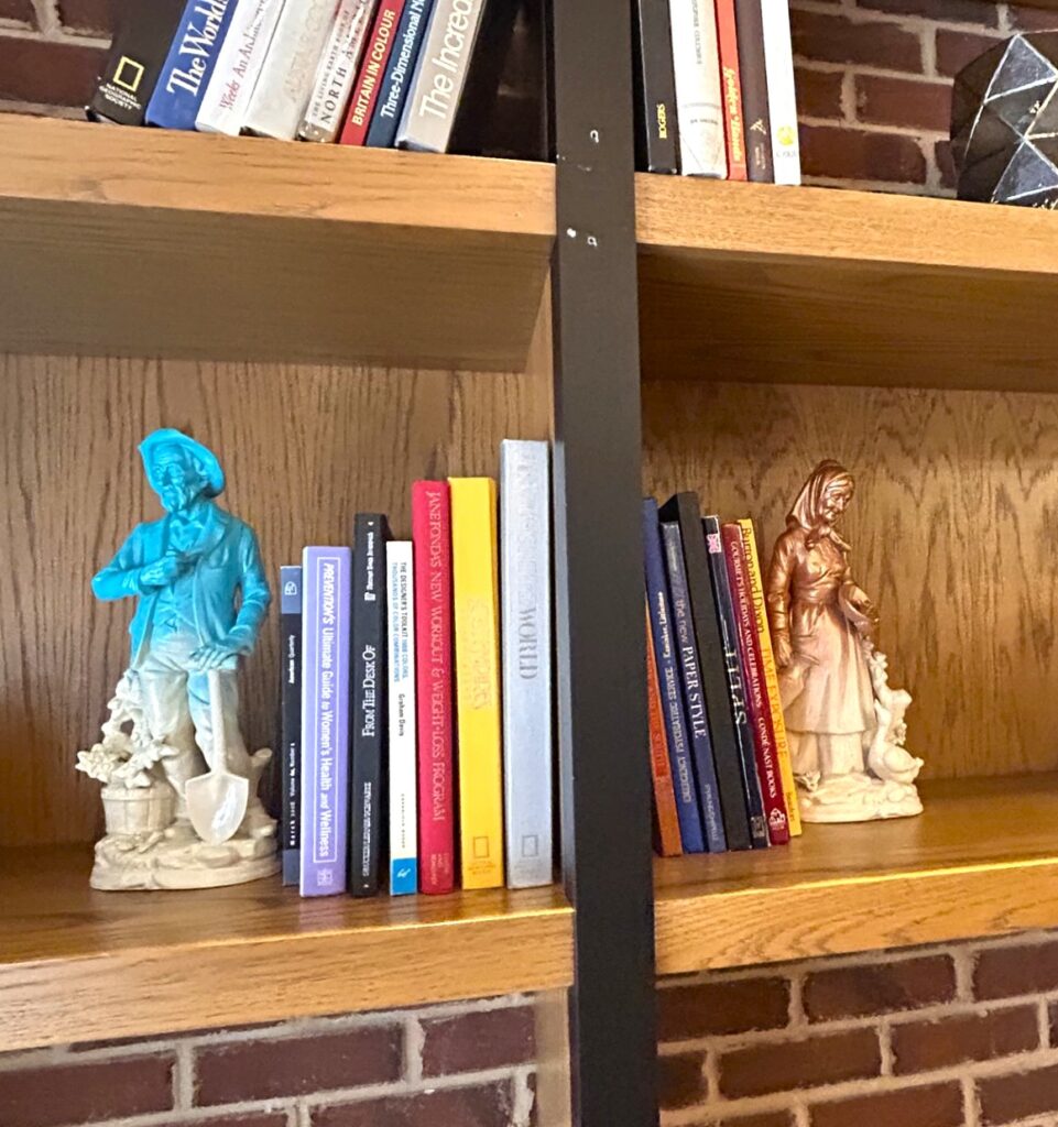 Once dry, place your refreshed statues wherever you want a little elegance and whimsy. Style them with books, vases, artwork, and other treasures—many of which you can also find at Goodwill.