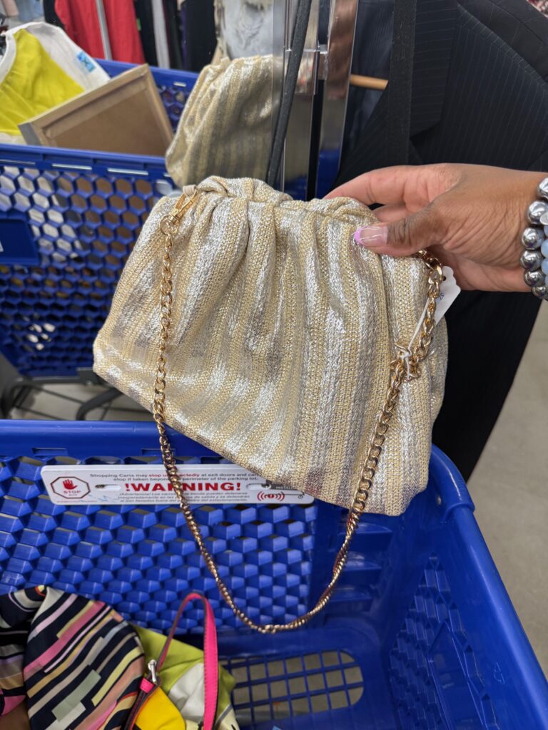 The first handbag I spotted for a hot pink bucket bag that turned out to be from Rebecca Minkoff. The brand is described as an accessible luxury brand that uses quality materials, but its price point is positioned to be more affordable than high-end brands. The color is great to sport for the Summer months or as a pop of color any time of the year. The shape was flattened, but I am sure I can add an old t-shirt to bring the bucket bag back to life. It is a total steal at $9.99.