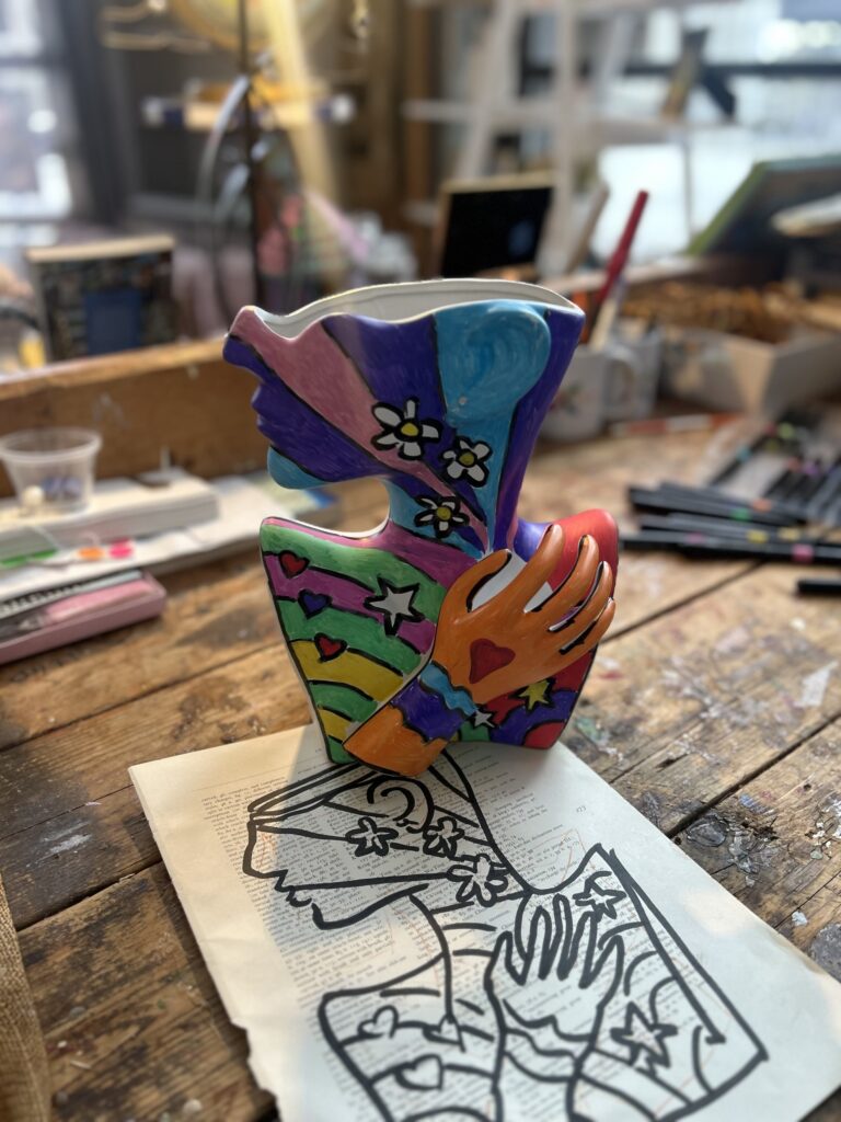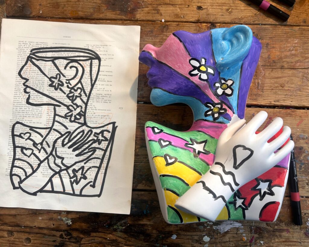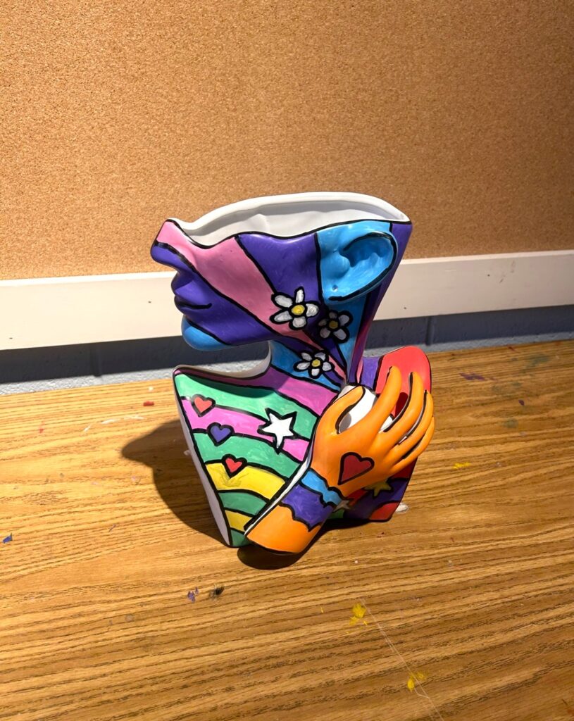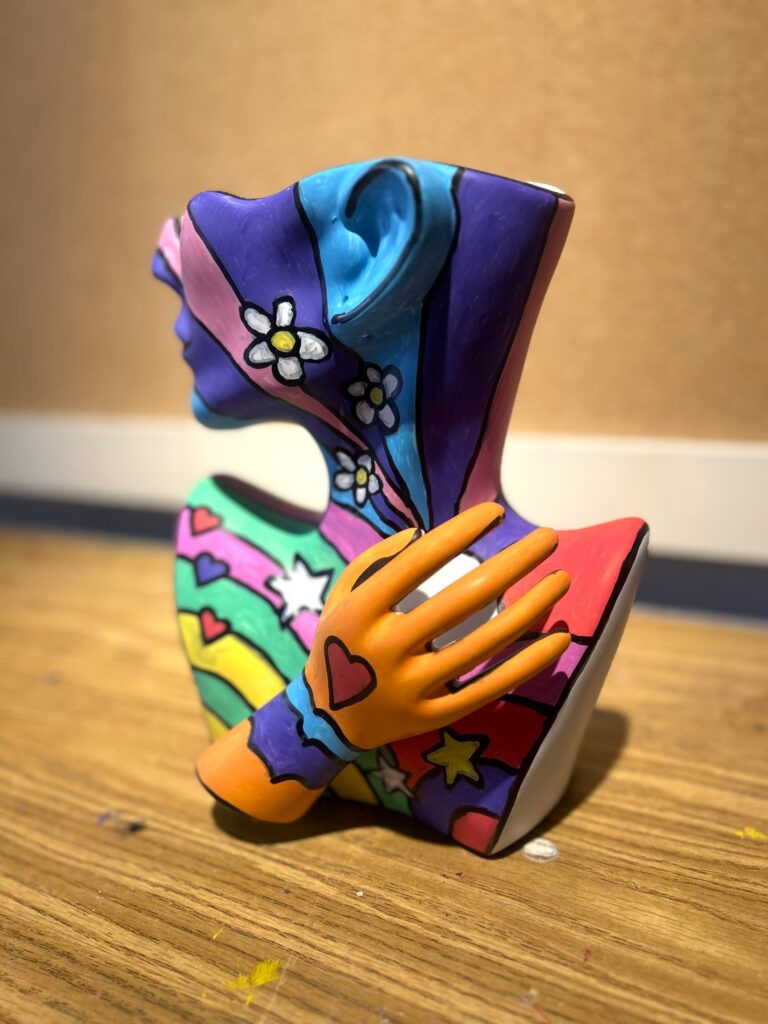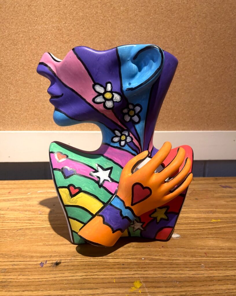 A sculptural female face vase gets a bold, colorful makeover as we continue celebrating Women’s History Month. While the style inspiration comes from pop artist Peter Max, this joyful upcycle honors the beauty, strength, and creative spirit of women.