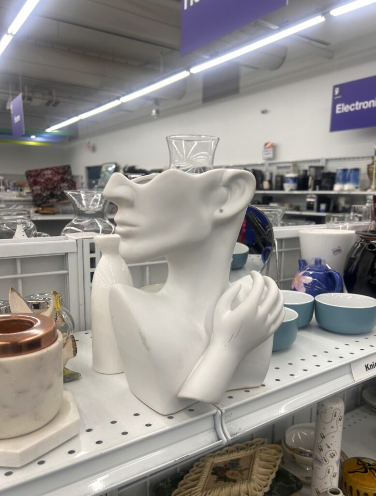 On this particular visit, I stumbled upon a true standout: a sculptural vase featuring a woman’s face and delicately placed hand. Elegant. Unique. Full of personality. I knew instantly that she was coming home with me for a 2026 glow-up.