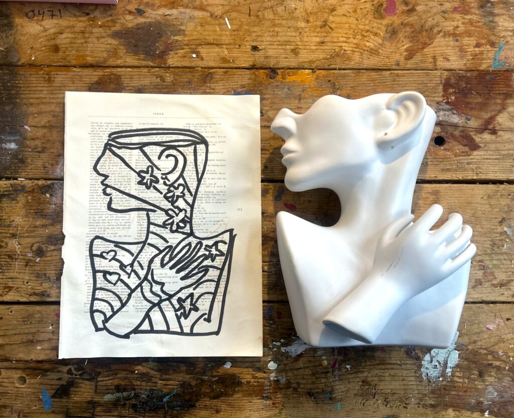The beauty of a piece like this? The possibilities are endless. Her graceful shape immediately brought Peter Max to mind—think bold colors, graphic lines, playful patterns, and that signature groovy energy.